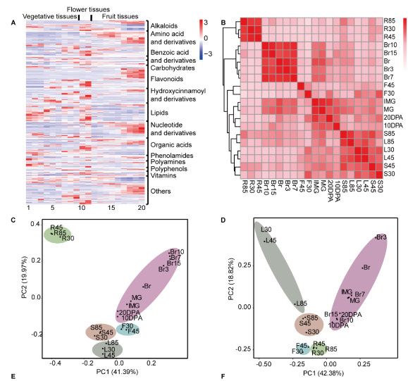 基于“非靶向代謝組學”,實現(xiàn)了高靈敏度、高通量的代謝物鑒定。 該平臺可進行脂溶、水溶性代謝物的z確定性和√確定量,并結合多元商業(yè)軟件及自建分析流程搭建了基于代謝組的多組學數(shù)據(jù)整合分析流程。我們將通過幾篇文獻為大家概述非靶代謝在植物品質研究中的應用。
