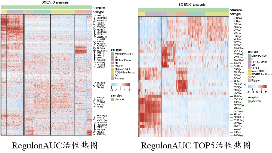 單細(xì)胞研究通常會(huì)涉及到一個(gè)核心關(guān)鍵問(wèn)題:細(xì)胞的異質(zhì)性以及這種異質(zhì)性是如何發(fā)展和維持的。這種細(xì)胞異質(zhì)性很大程度上是由潛在的基因調(diào)控網(wǎng)絡(luò)決定的,特定轉(zhuǎn)錄因子(transcription factor,TF)集合的協(xié)同表達(dá)驅(qū)動(dòng)各自靶標(biāo)基因的表達(dá),從而建立特定的基因表達(dá)譜。因此,單細(xì)胞的基因調(diào)控網(wǎng)絡(luò)對(duì)于深入挖掘細(xì)胞異質(zhì)性背后的生物學(xué)意義是至關(guān)重要的。利用pySCENIC從單細(xì)胞轉(zhuǎn)錄組數(shù)據(jù)中推斷TF、基因調(diào)控網(wǎng)絡(luò)和細(xì)胞類(lèi)型,基本原理是基于共表達(dá)和DNA調(diào)控保守序列(motif)分析推斷基因調(diào)控網(wǎng)絡(luò),然后在每個(gè)細(xì)胞中分析網(wǎng)絡(luò)活性以鑒定細(xì)胞狀態(tài)。