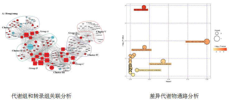 ??????生物體的表型由?DNA、RNA、蛋白質(zhì)及代謝物等各個層面調(diào)控決定,mRNA?研究可以獲得樣本之間差異基因、復(fù)雜調(diào)控網(wǎng)絡(luò),而基因與表型不能直接關(guān)聯(lián),難以鑒定控制關(guān)鍵途徑的結(jié)構(gòu)及調(diào)控基因,結(jié)合代謝組,輔助時序表達(dá)的眾多基因進(jìn)行”共表達(dá)”分析,揭示基因功能,并將基因與表型關(guān)聯(lián)起來,快速鑒定核心調(diào)控網(wǎng)絡(luò),確定關(guān)鍵候選基因。