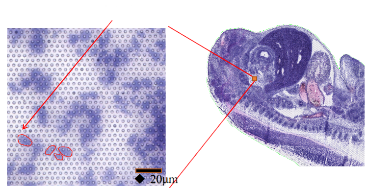 哺乳動(dòng)物體細(xì)胞平均直徑為10μm,百創(chuàng)S1000空間轉(zhuǎn)錄芯片分辨率達(dá)到了4.8μm,到達(dá)亞細(xì)胞級(jí)別。