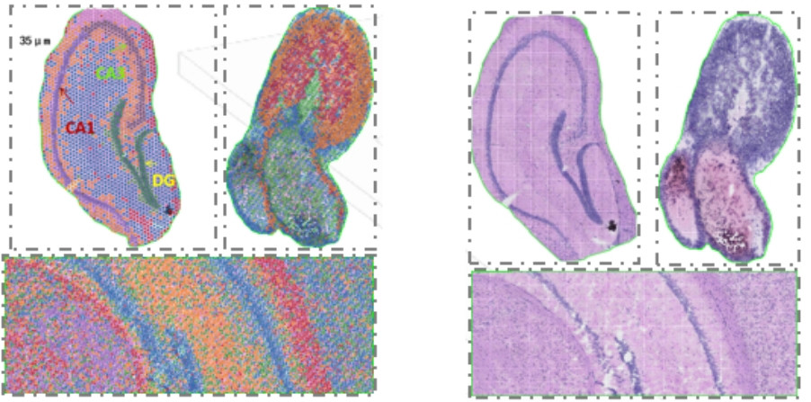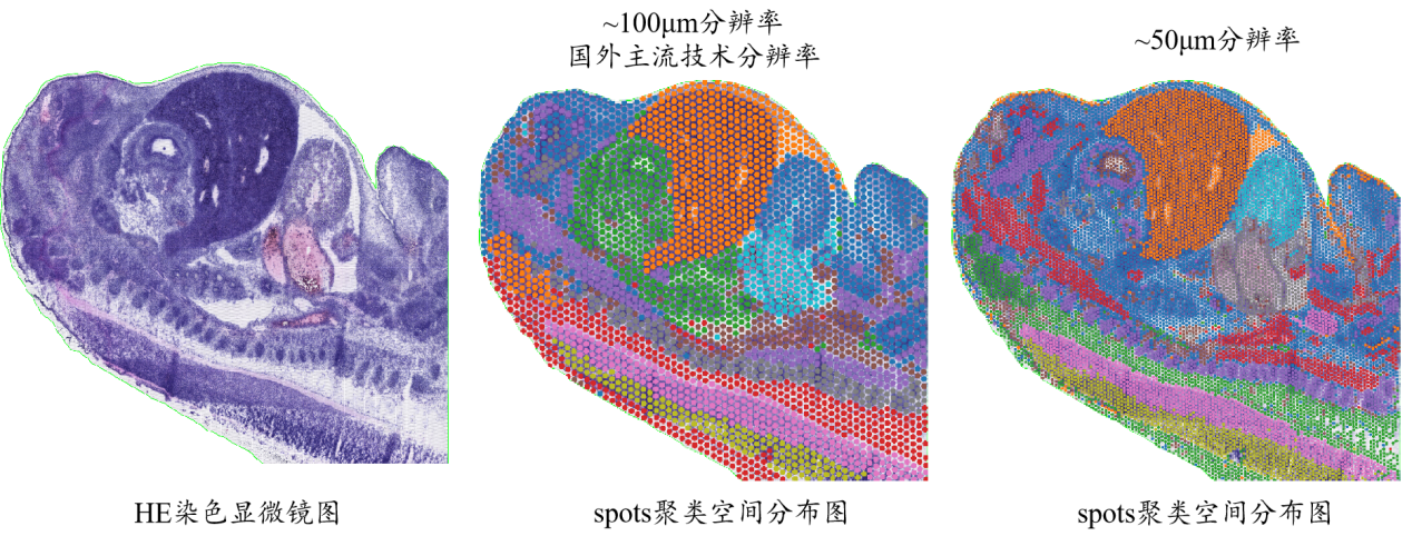 百創(chuàng)S1000空間轉(zhuǎn)錄芯片保留原片HE染色,結(jié)合高分辨率的spots聚類(lèi),能得到更為精準(zhǔn)的結(jié)果。
