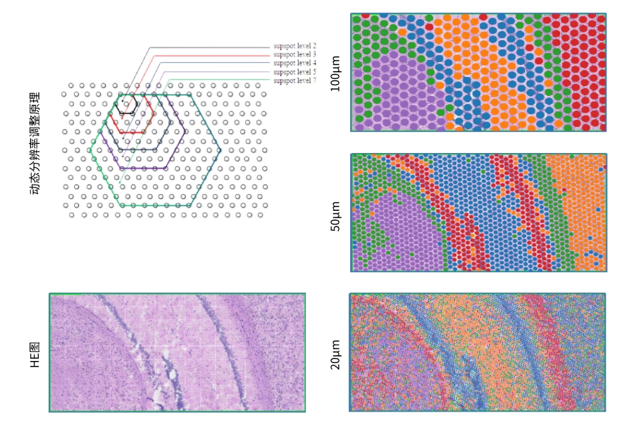 百創(chuàng)S1000空間轉(zhuǎn)錄芯片結(jié)果支持從100μm-4.8μm動(dòng)態(tài)調(diào)整。